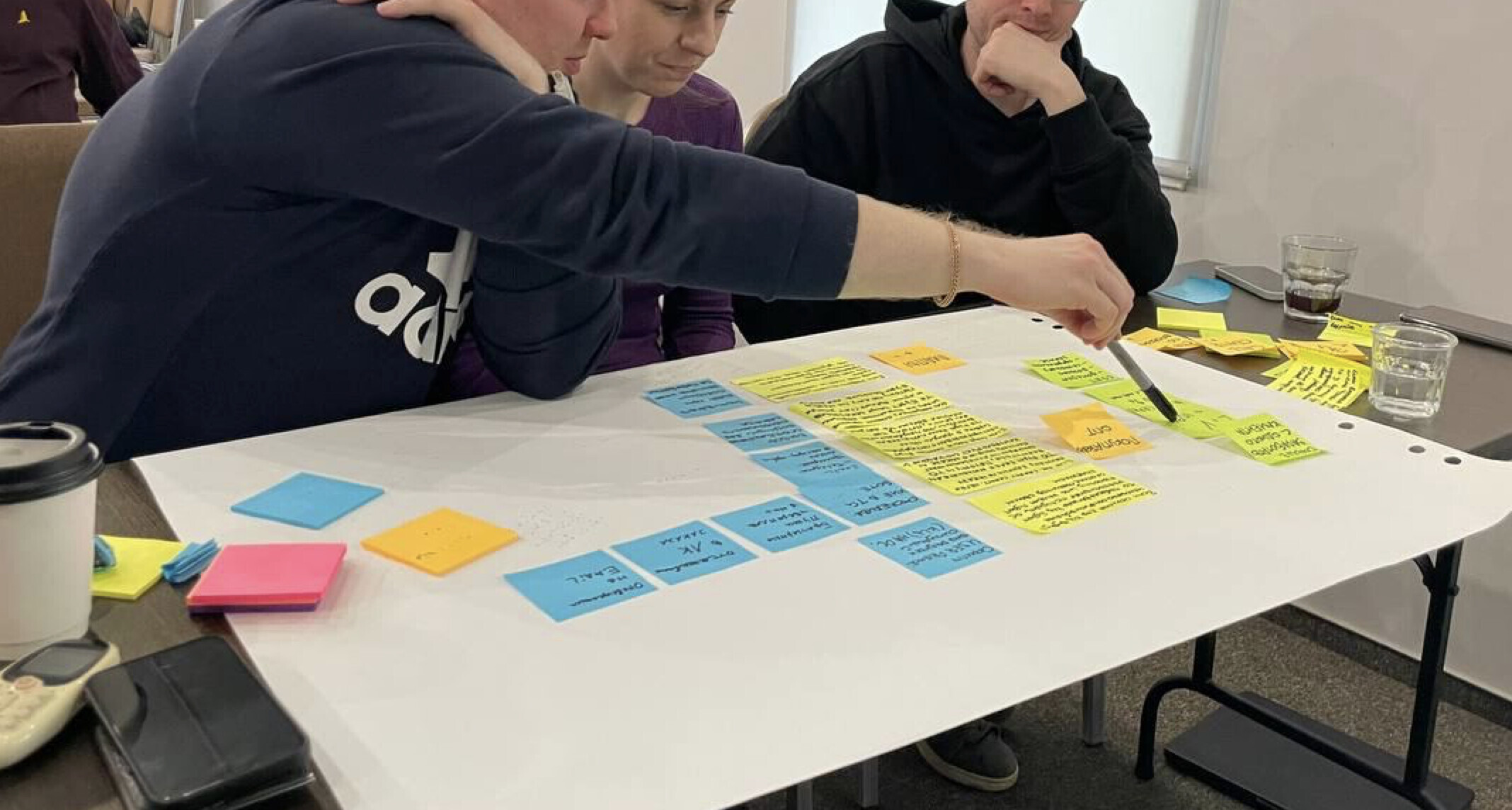 Я сам люблю поработать с бумажными стикерами у доски, потому что так получается выше интенсивность коммуникации и личного включения каждого участника. Кроме этого, люди лучше запоминают и усваивают информацию, когда делают что-то своими руками в реальном мире, а не виртуальном.