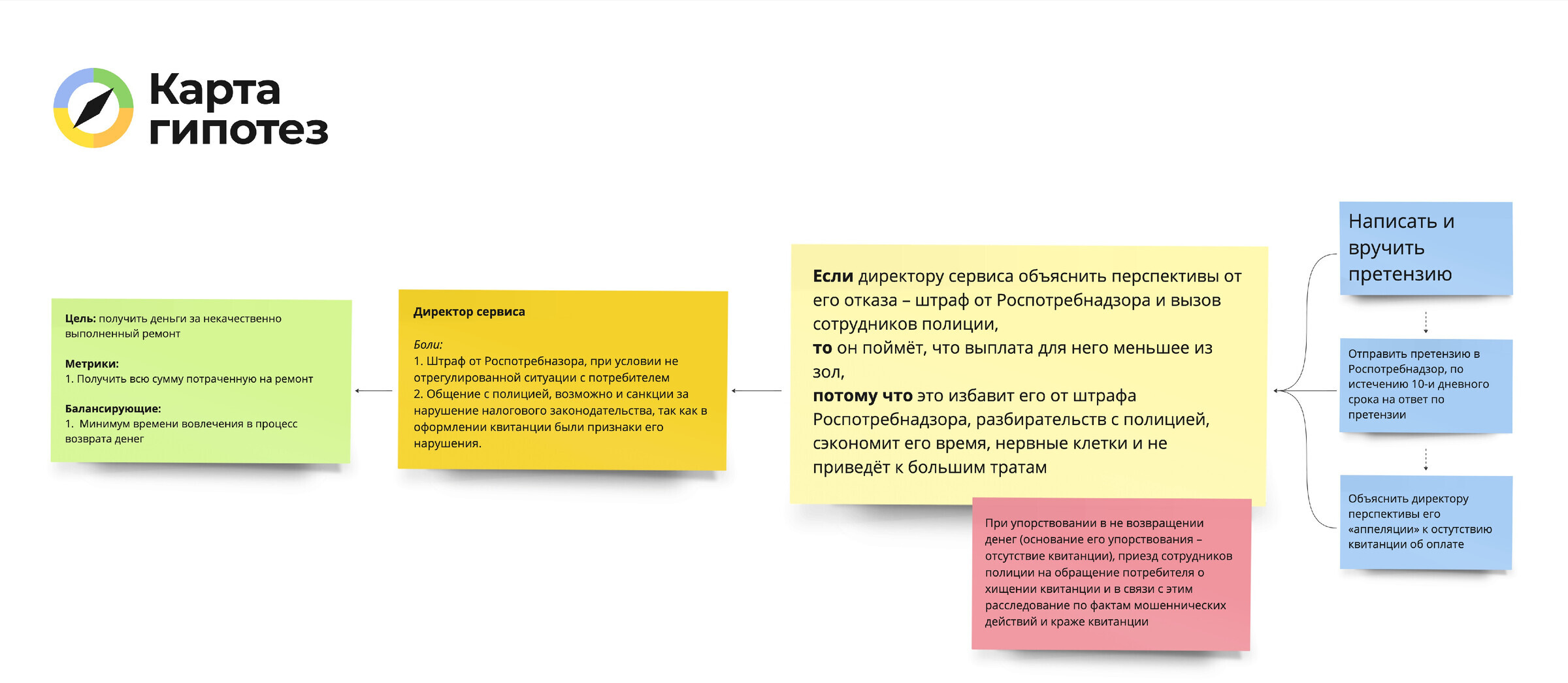 Мне в сообщения прислали пример, когда пригодилась Карта гипотез в повседневной жизни. Хочу поблагодарить автора, который это сделал, потому что всегда интересно смотреть на примеры карт из реальной практики.