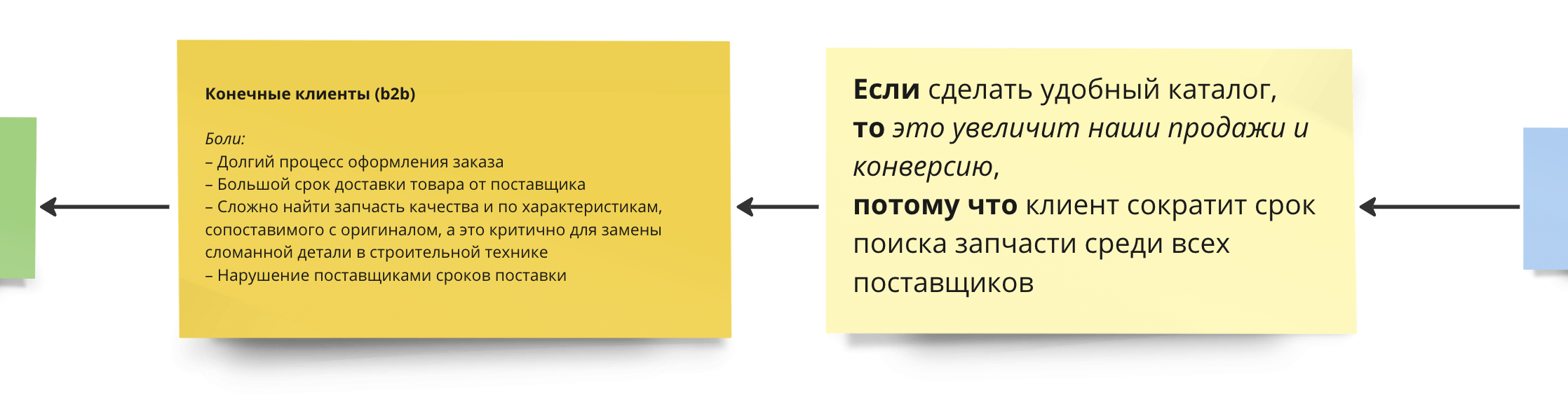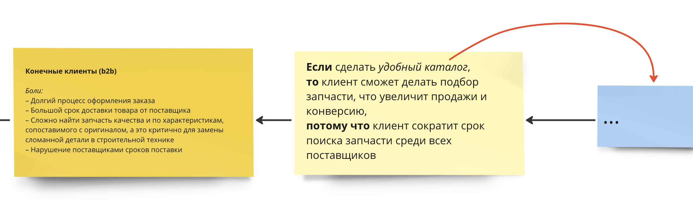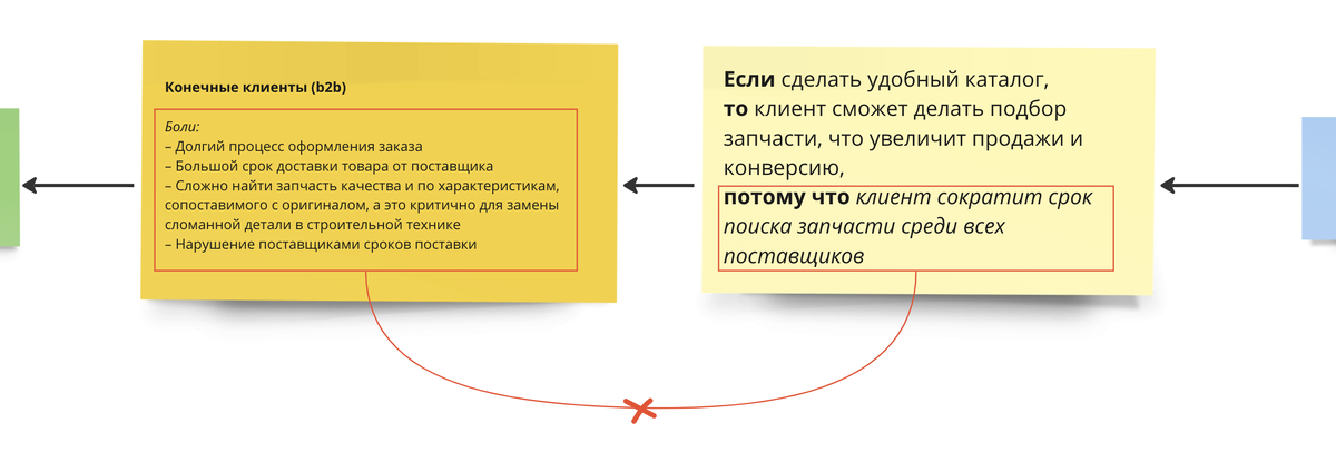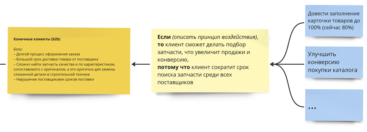 Это была карта компании по продаже запчастей для строительной техники, которые планируют кратно расти в ближайшие годы. Одна из их гипотез выглядела следующим образом: