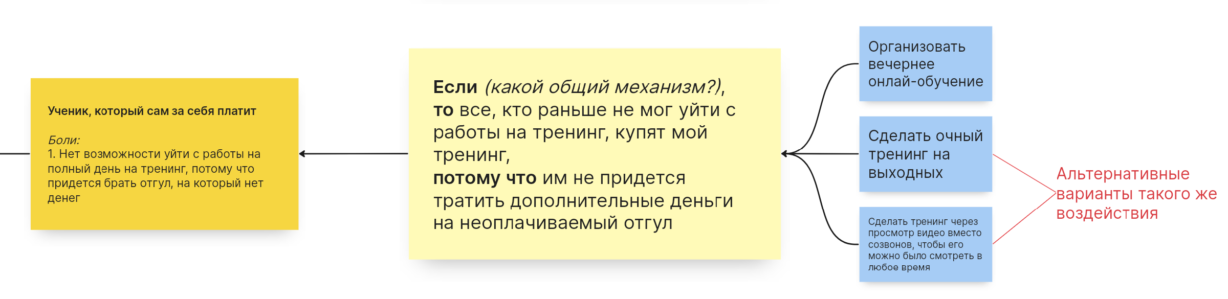 Мы увидели, что не только вечернее онлайн-обучение может привести в действие цепочку «если–то–потому что». Теперь привязка к одной задаче устранена, у нас появились альтернативы.