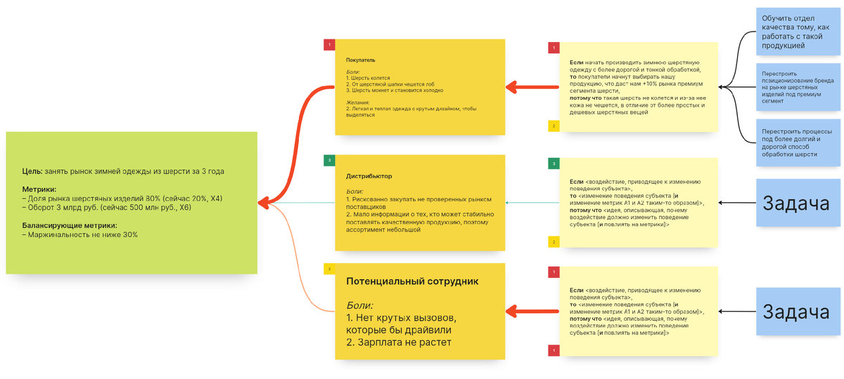 Вот пример Карты гипотез с реальной стратсессии: