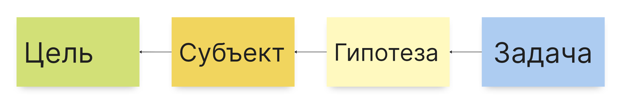 Здесь очевидно, что сначала в работу нужно брать Гипотезу1, потому что она сильно влияет на цель и мало стоит. А вот Гипотеза3 скорее всего никогда не возьмут в работу из-за низкой степени влияния и высокой стоимости.