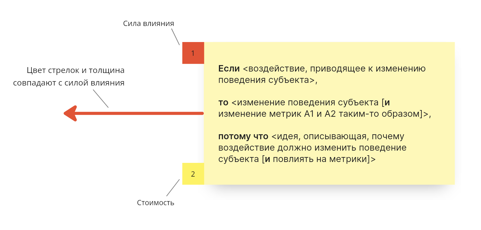 - У метрики и мотивации обозначается сила влияния одним из трех ярлыков.